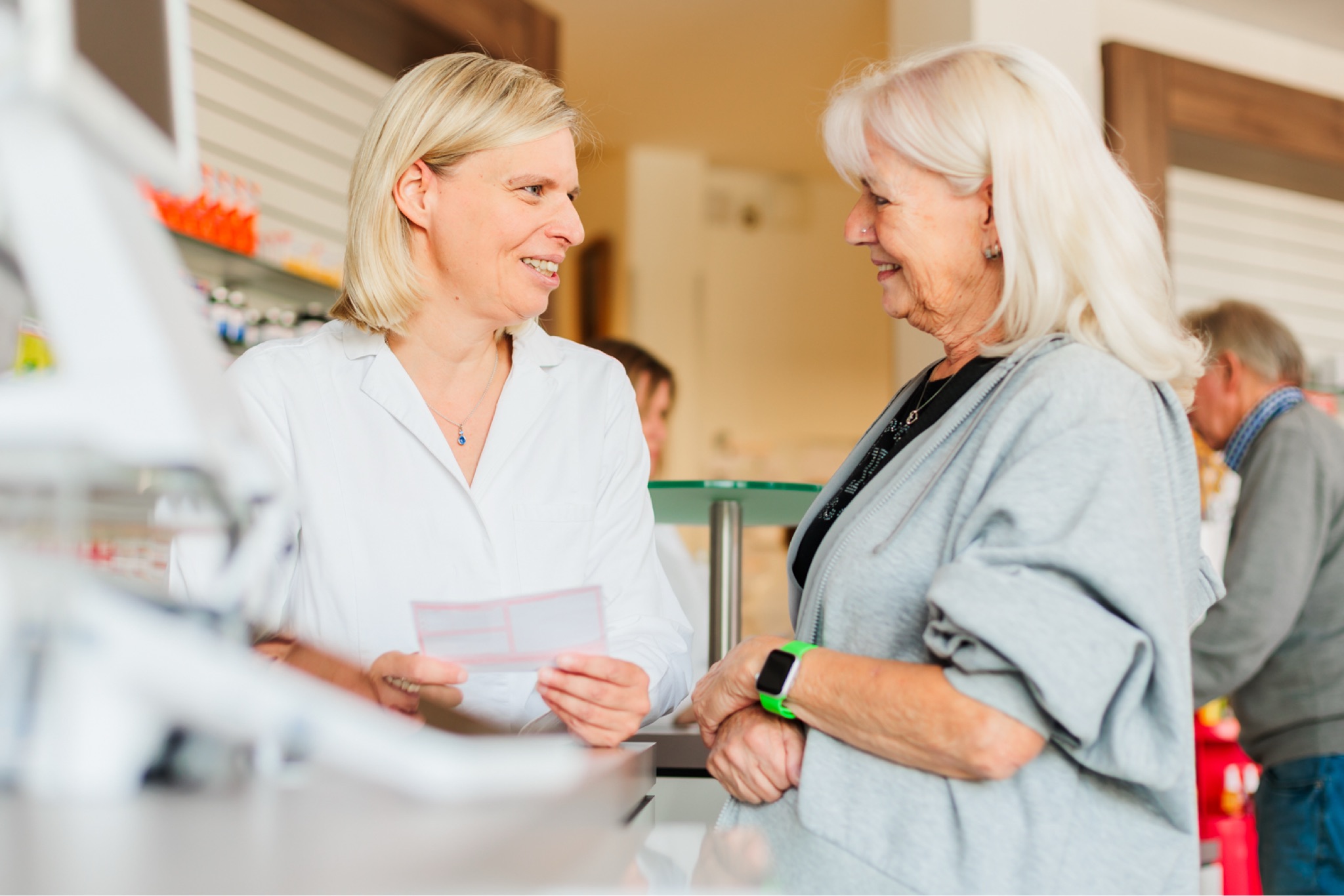 In unserer Apotheke sprechen wir Deutsch, Englisch und Russisch, um eine umfassende Beratung für alle zu gewährleisten. Unser mehrsprachiges Team ermöglicht es, auf die individuellen Bedürfnisse jedes Kunden einzugehen, und bietet kompetente Unterstützung in Ihrer Sprache. In unserer Apotheke kennt persönliche Beratung keine Sprachbarriere!